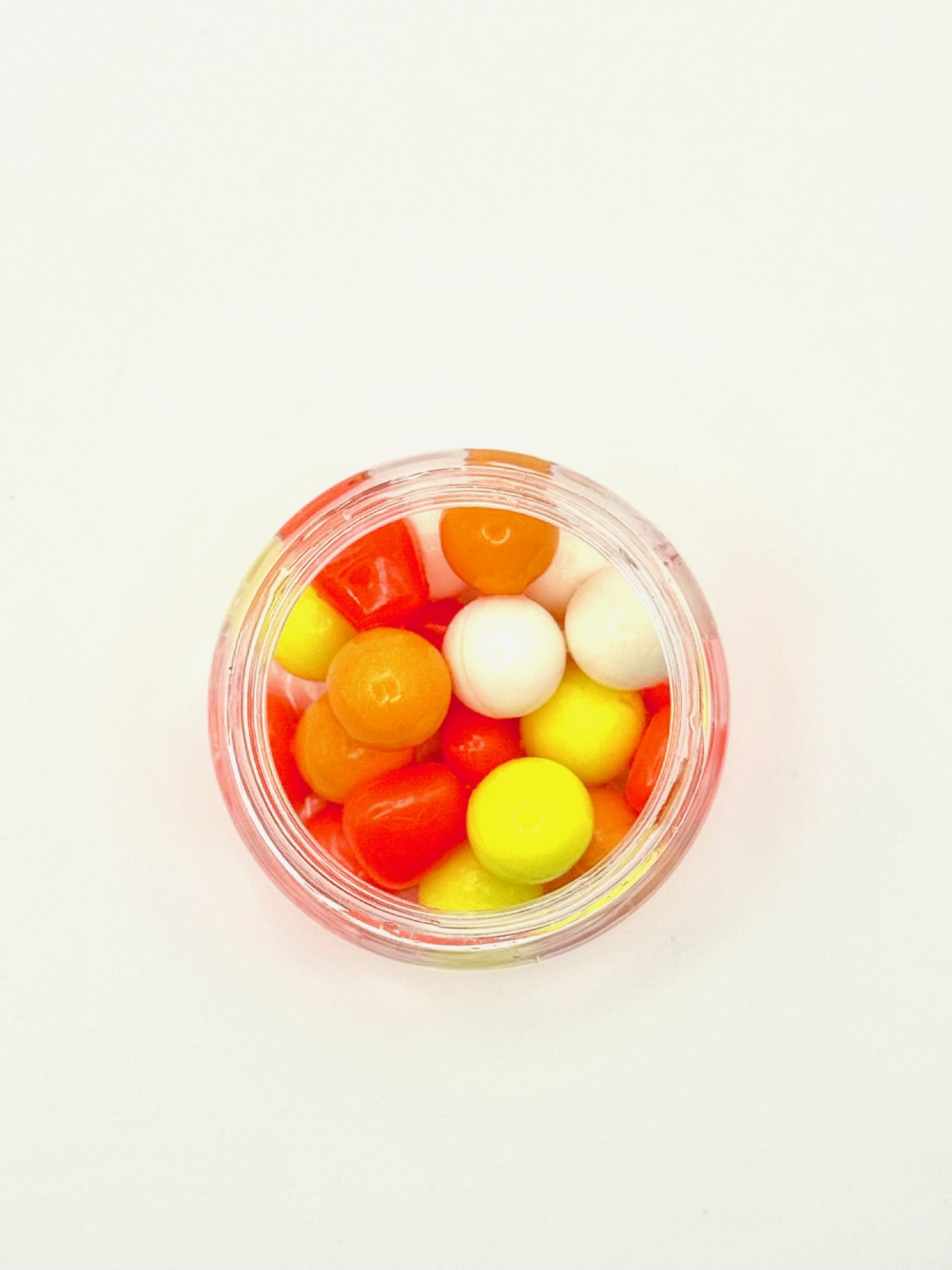 ホワイト・イエロー・オレンジの3色の10mmイミテーションポップアップ、にフェイクコーンを組み合わせ、あらゆる水質や天候に対応。濃縮クランベリーフレーバーを配合し、水中でしっかりと香りを拡散して鯉の嗅覚を強く刺激します。